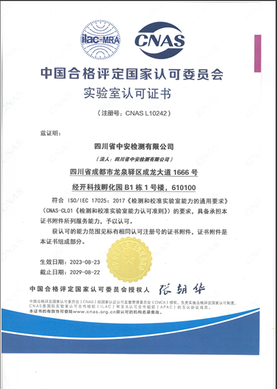 四川省中安檢測有限公司是國內權威第三方食品檢測檢驗機構,實驗室已取得CMA、CNAS、CATL證書,總面積5000余平米,現有資質認定的標準項目能力達8000余項,擁有GC、GC-MS、HPLC、LC-MS-MS、AAS、AFS、ICP-MS、MDS、BSC等進口精密分析儀器在內的檢測設備200余套,擁有政府特聘專家、博士、高級工程師、高級審核員等資深技術專家帶隊的技術服務團隊200余人。